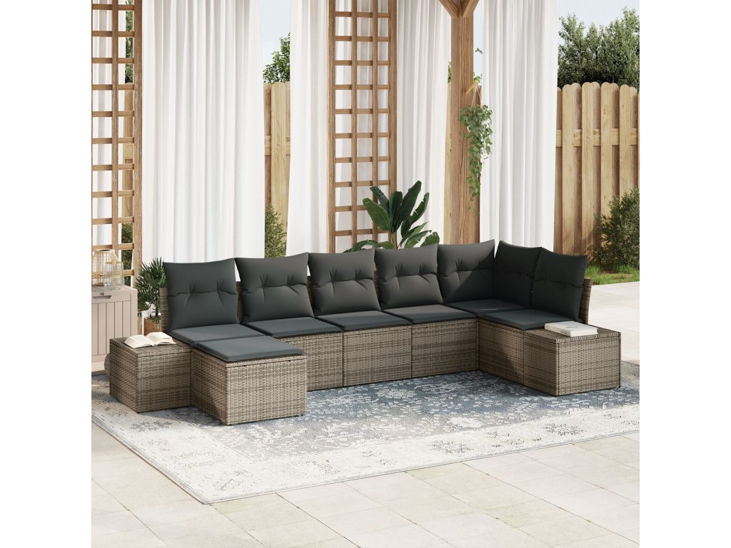 Sada zahradních pohovek s polštářem 7 pcs Šedá polyratan