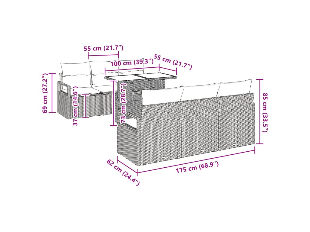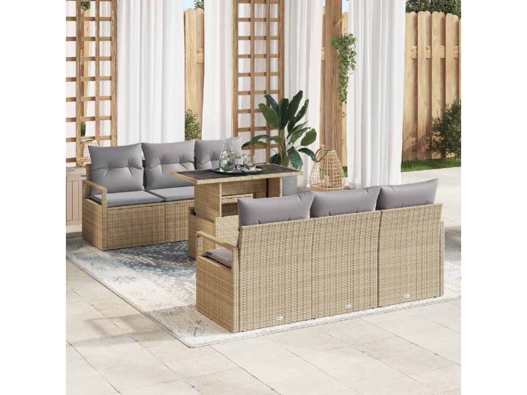 Sada zahradních pohovek 7 pcs Béžová a Světle šedá polyratan