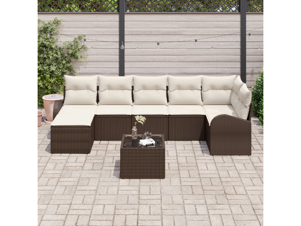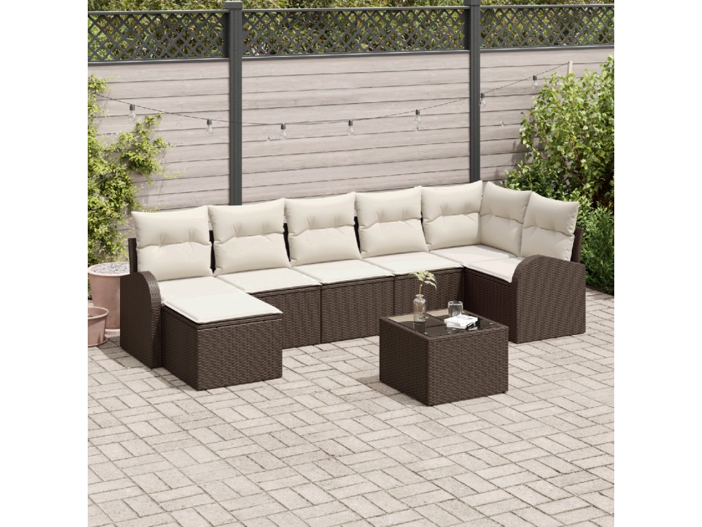 Sada zahradních pohovek 8 pcs Hnědá Poly ratan