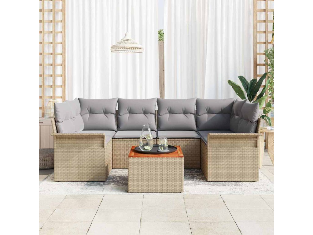 Sada zahradních pohovek s polštářem 7 pcs Béžová a Světle šedá