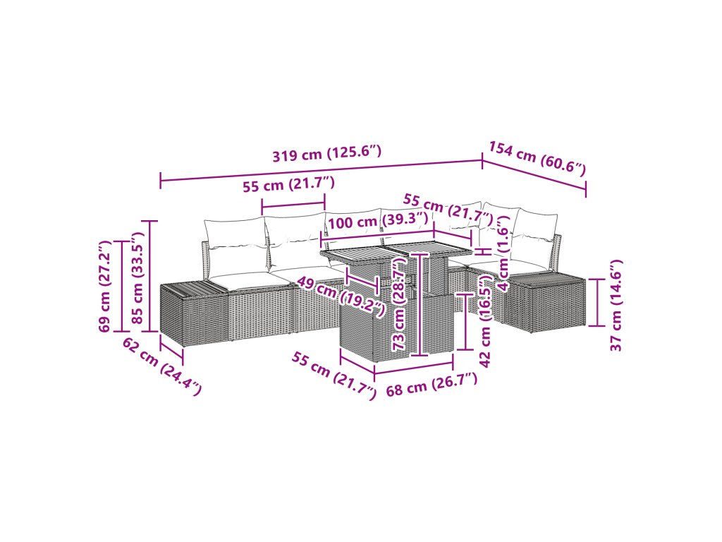 Set zahradního jídelního nábytku z poly ratanu je vynikající soupravou, která spojuje současný design s funkčními vlastnostmi. Ideální pro vylepšení vašich venkovních prostor, tento set se pyšní elegantním estetickým vzhledem, který dobře ladí se současnými styly zahrad a teras. Představte si, že hostíte krásné jarní a letní shromáždění, obklopeni bujnou zelení, zatímco sedíte na tomto elegantním a funkčním zahradním jídelním setu. Jeho ergonomický design zajišťuje komfort při dlouhých večeřích, což z něj činí ideální volbu jak pro zábavu hostů, tak pro neformální rodinná jídla ve vašem venkovním ráji.