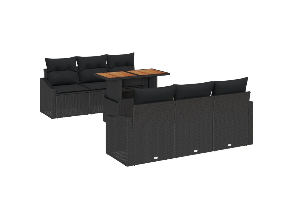 Sada zahradních pohovek s polštářem 7 pcs Černá a hnědá