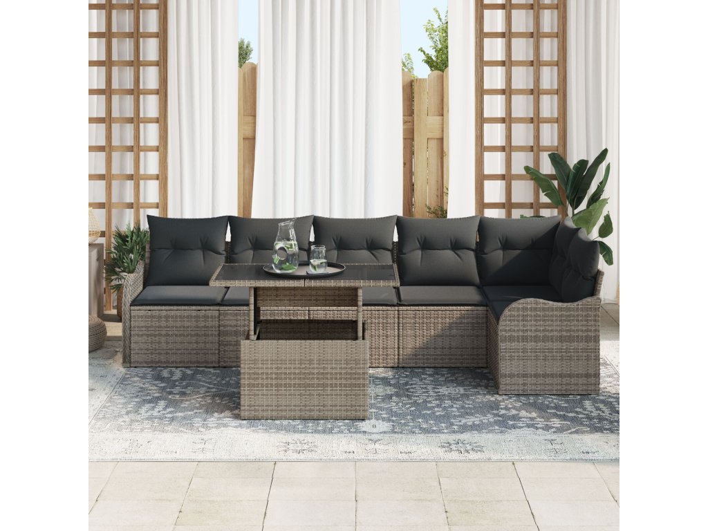 Sada zahradních pohovek s polštářem 7 pcs Šedá Poly ratan