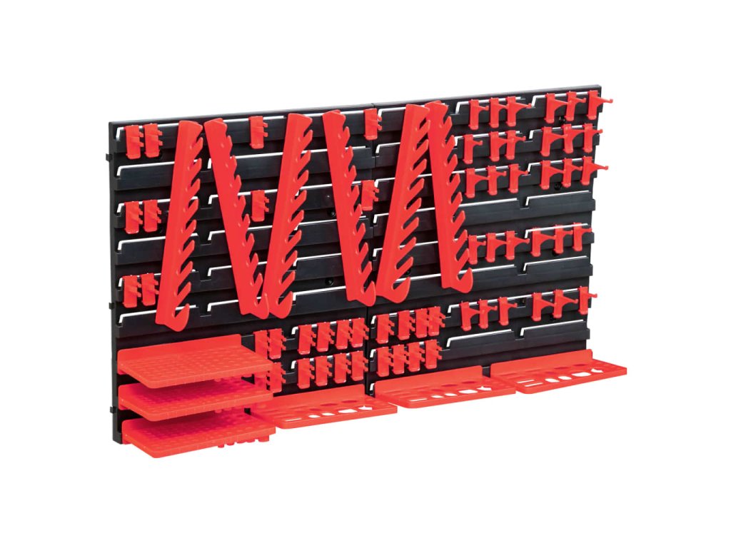 Tento funkční regál s různými držáky nabízí mnoho možností ke skladování drobných předmětů, jako jsou šrouby, hřebíky, matice, objímky, spoje atd. K uložení různých nástrojů jsou vhodné různé druhy příslušenství. Úložnou sadu je možné libovolně rozšiřovat a dá se snadno namontovat na stěnu garáže nebo kůlny. Soupravu skladovacích zásobníků si můžete přizpůsobit dle vlastních potřeb.