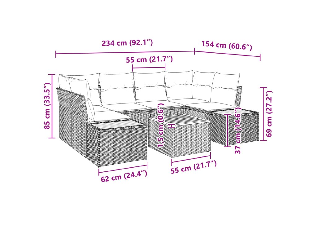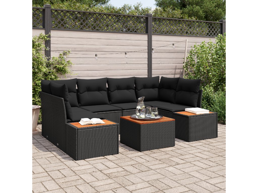 Sada zahradních pohovek s polštářem 7 pcs Černá Poly ratan
