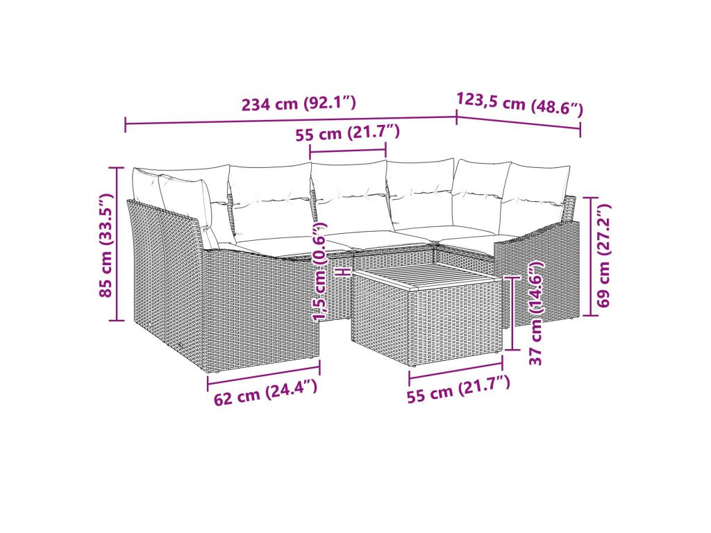 Povrchový materiál z poly ratanu: Tento odolný poly ratan se postará o moderní vzhled tvých venkovních prostor a vydrží UV záření i špatné počasí, takže nevybledne a nerozpadne se. Tkaná textura vypadá stylově a krásně ladí s přírodou. Kompletní set: Obsahuje dvě středová sedačky, dvě rohové, dvě arm sofa a jeden zahradní stůl, takže si sezení uspořádáš podle sebe. Tento modulární design je ideální jak pro malé posezení, tak větší akce. Pohodlné polštáře: Vyrobené z polyesteru, skvěle ti poskytnou oporu a jsou dostatečně odolné pro venkovní podmínky. Odolávají vodě a skvrnám, takže pořád vypadají skvěle a jsou příjemné. Flexibilní uspořádání: S modulárním designem si můžeš dost pohrát a přehodit sezení jak potřebuješ. Tato variabilita ti dá možnost měnit uspořádání podle sezóny nebo příležitosti, aniž bys přišel o ten stylový vkus. Snadná údržba: Stačí otřít vlhkým hadříkem a v případě nepříznivého počasí vzít polštáře dovnitř. Používání obalů, když je zrovna nepoužíváš, taky pomůže chránit set před povětrnostními vlivy, aby hezky vypadal léta.- Barva: Černá