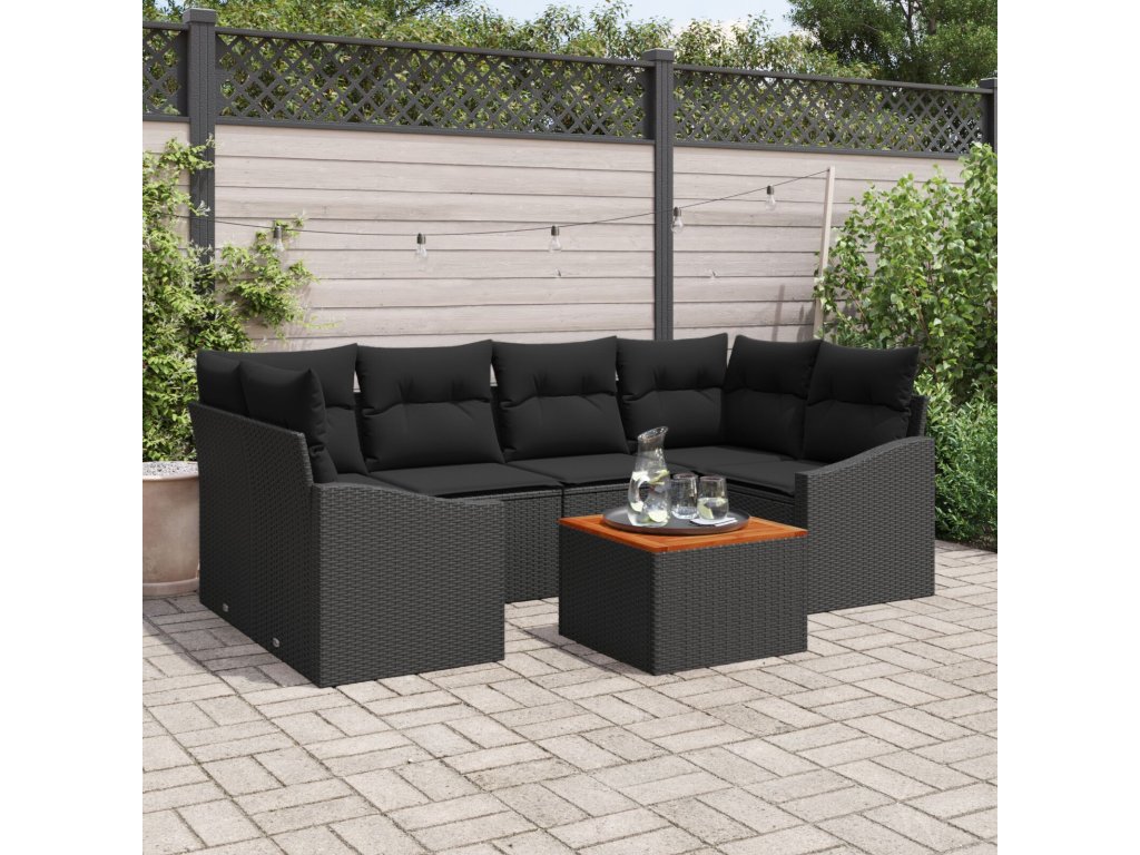Sada zahradních pohovek s polštářem 7 pcs Černá Poly ratan
