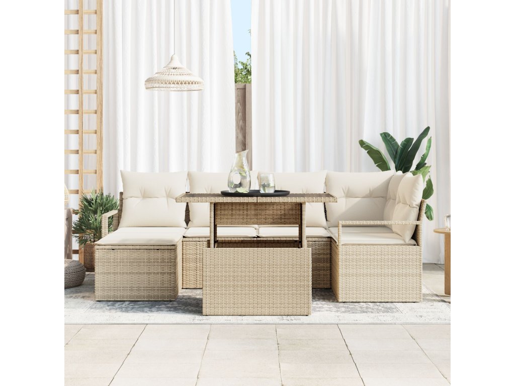 Sada zahradních pohovek s polštářem 7 pcs béžová a krémová