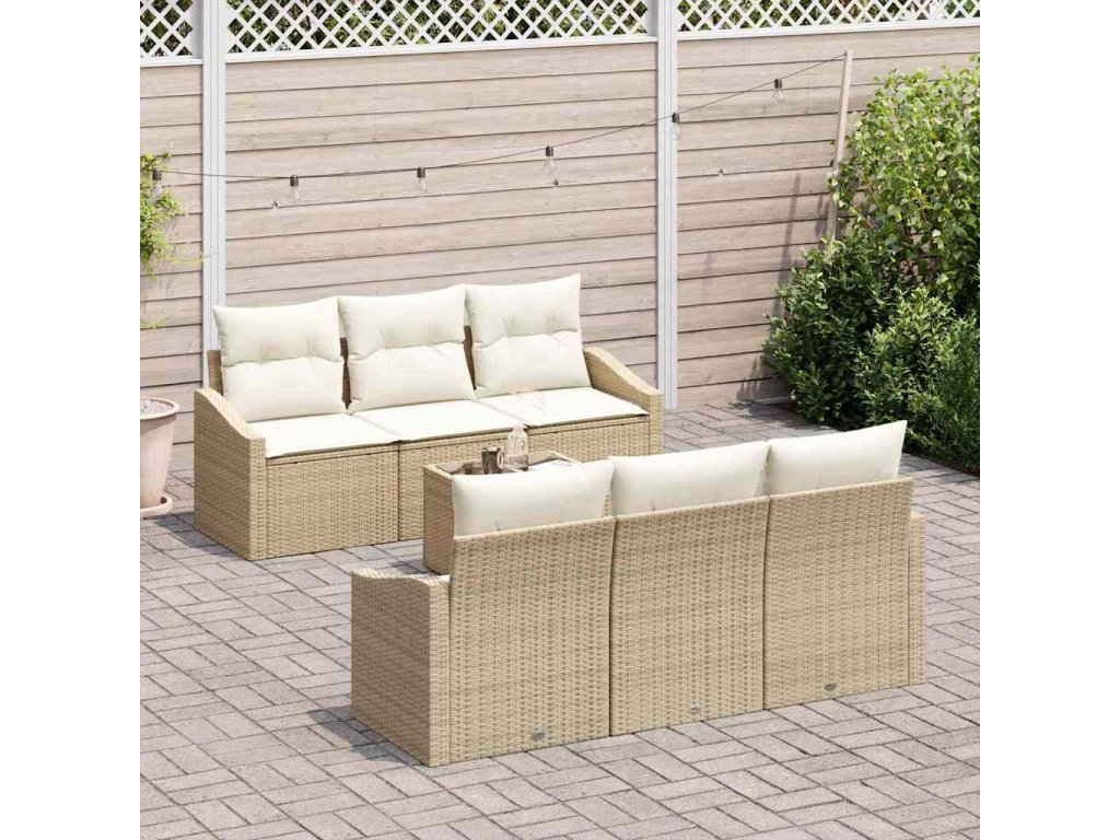 Set pohovek s polštářem 7 pcs Béžová a krémová polyratan