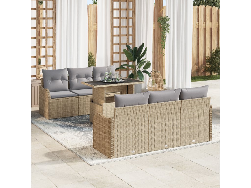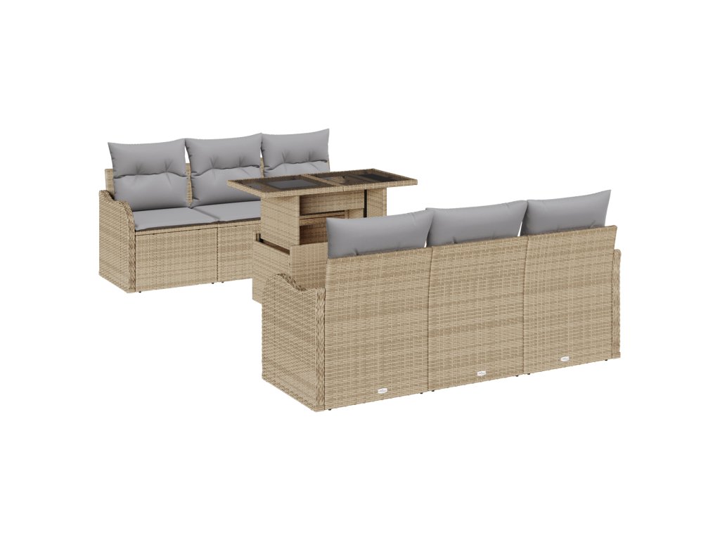 Sada zahradních pohovek s polštářem 7 pcs Béžová Poly ratan