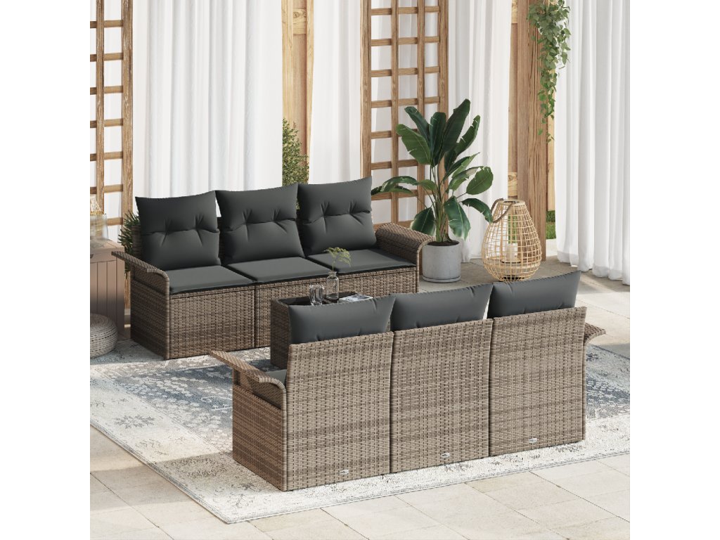 Sada zahradních pohovek s polštářem 7 pcs Šedá polyratan