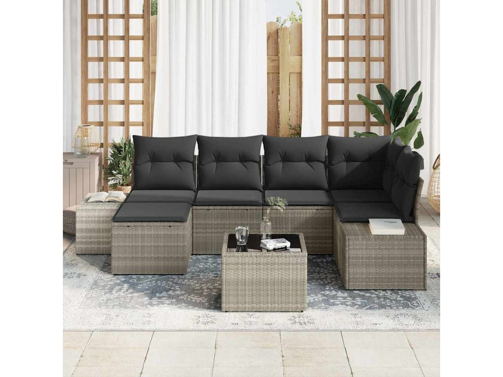 Sada zahradních pohovek s polštářem 6 pcs Světle šedá polyratan