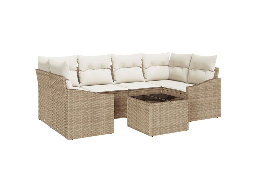 Set pohovek s polštářem 7 pcs Béžová a krémová polyratan