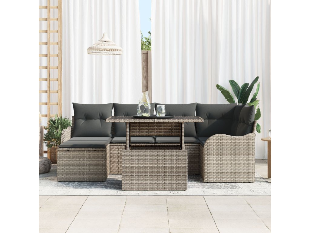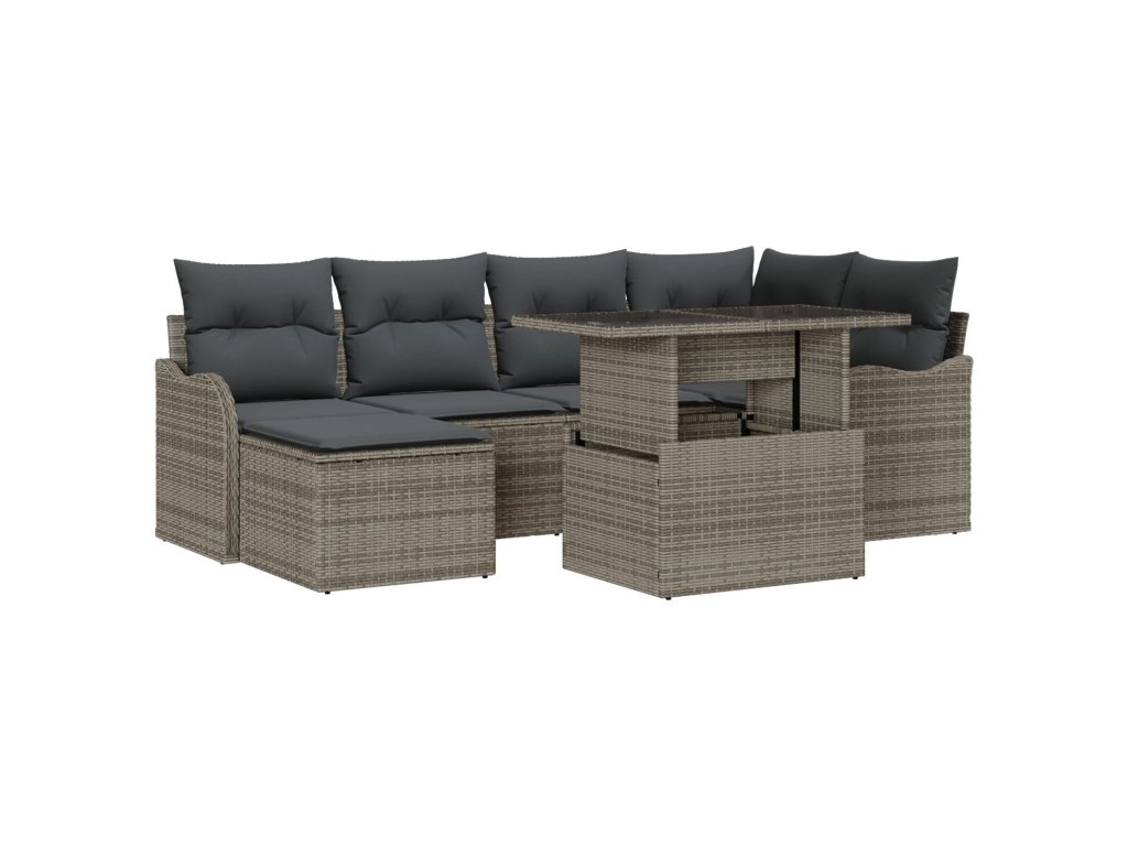 Sada zahradních pohovek s polštářem 7 pcs Šedá Poly ratan