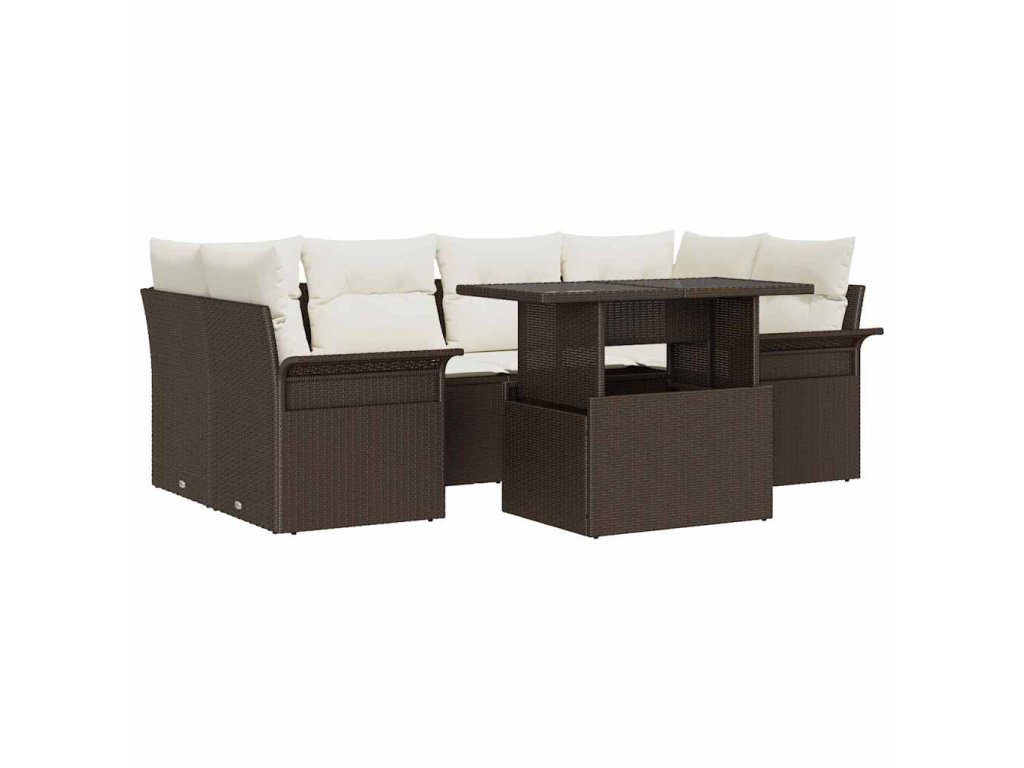Sada zahradních pohovek s polštářem 7 pcs Hnědá Poly ratan