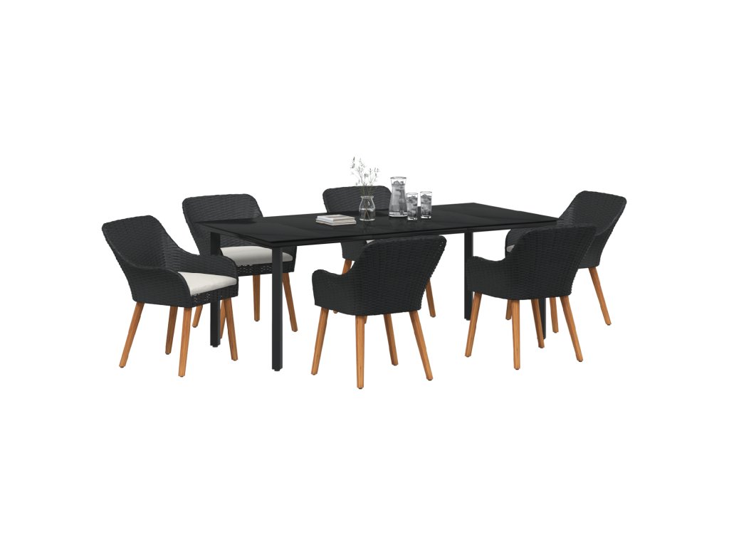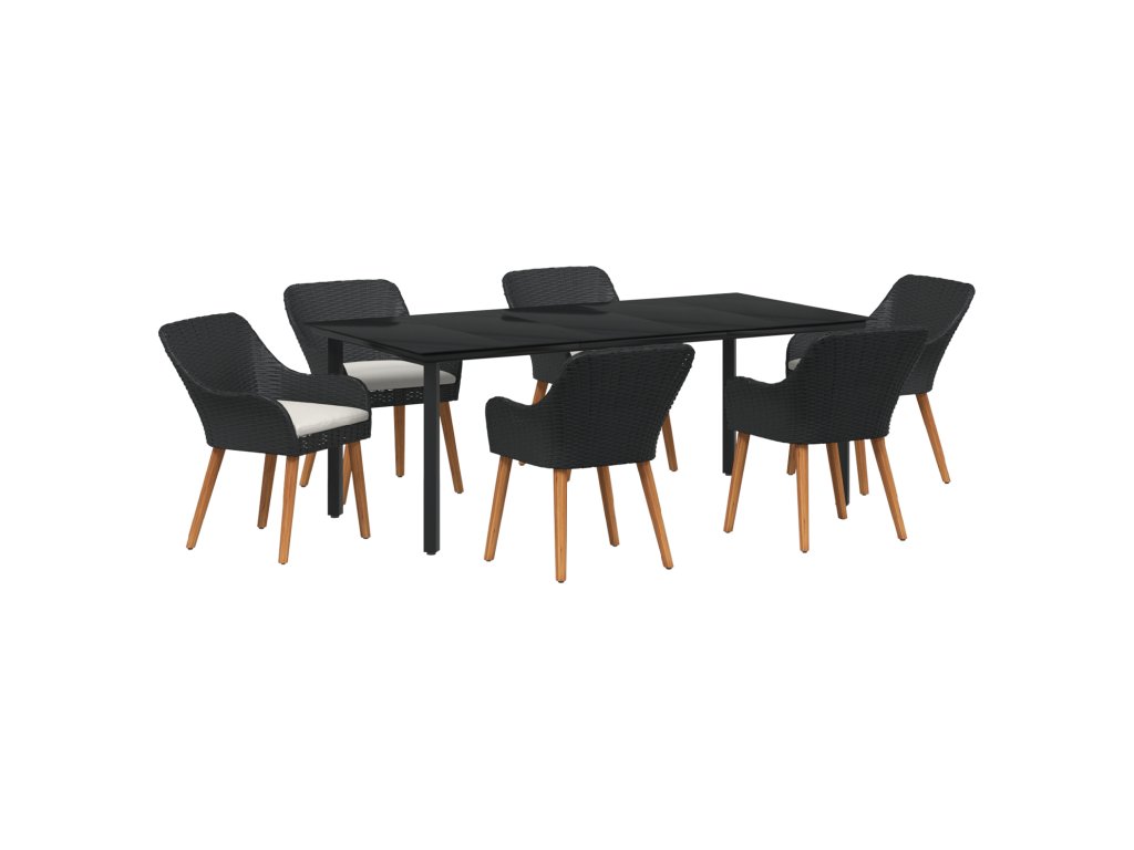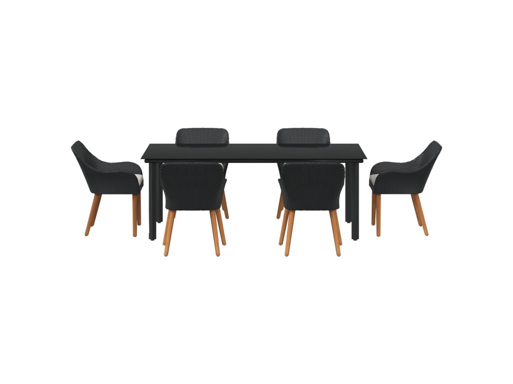 Zahradní jídelní souprava s polštářem 7 pcs Černá polyratan