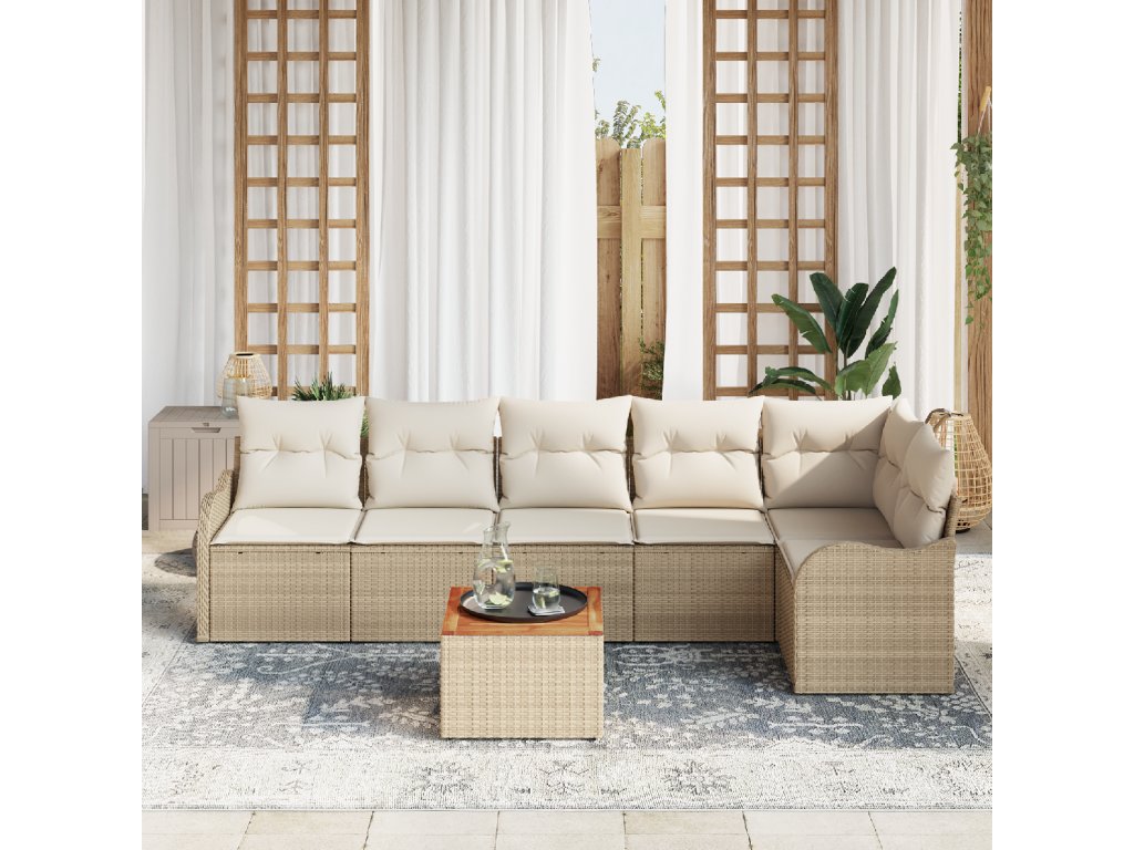 Sada zahradních pohovek 7 pcs Béžová Poly ratan