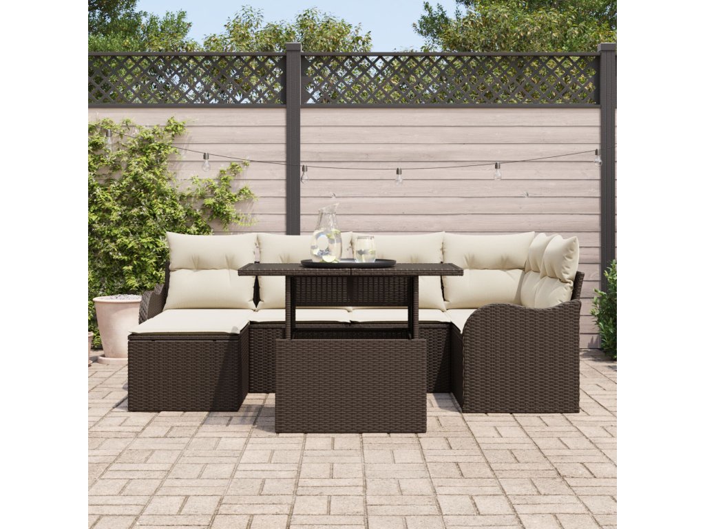Sada zahradních pohovek s polštářem 7 pcs Hnědá Poly ratan
