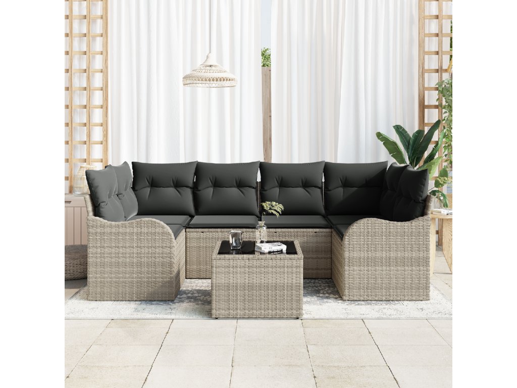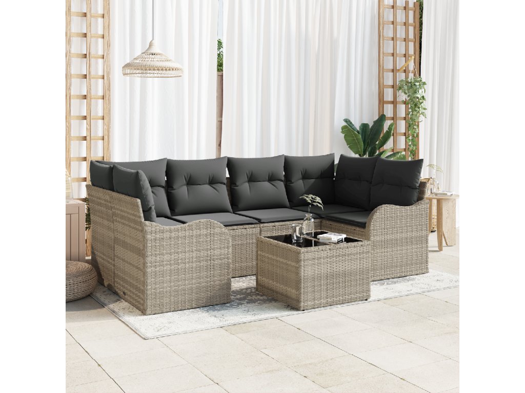 Materiály z poly ratanu a oceli Sedací souprava se chlubí robustní konstrukcí z poly ratanu a práškované oceli, která spojila vzhled s trvanlivostí. Poly ratan dodává vizuální přitažlivost, zatímco ocelový rám zajistí stabilitu. Tato kombinace povzbuzuje luxusní dojem a zajišťuje odolnost vůči povětrnostním vlivům, takže si užijete dlouhotrvající radost. Kompletní design komponentů Souprava nabízí více prvků: rohové a středové sedáky a arm sofa, všechny s pohodlnými opěrkami rukou. Stůl s tvrzeným sklem doplňuje celkový vzhled a poskytuje praktické řešení pro umístění různých věcí. Tyto komponenty usnadňují variabilní uspořádání a rychle se přizpůsobí vašim potřebám. Funkce a výhody Sedací souprava má odnímatelné potahy polštářů pro snazší údržbu. Její modulární design umožňuje rozšiřování podle aktuálních potřeb. S odolnými UV materiály si stále zachovává živé barvy na slunci, čímž si udržuje atraktivitu a funkčnost během slunečných dní. Všestranné možnosti použití Ideální pro terasy, zahrady a zahrádky, tato souprava se skvěle hodí do různých venkovních prostor. Vytvořte si zábavné rodinné chvíle nebo si užijte klidnou relaxaci. Díky jejímu flexibilnímu designu se snadno přizpůsobí jakékoli venkovní atmosféře nebo vašim preferencím. Údržba a péče Udržujte soupravu v super stavu tím, že ji po použití otřete vlhkým hadříkem. Při špatném počasí používejte ochranné kryty. Odnímatelné potahy polštářů se snadno perou, a materiály soupravy potřebují minimální péči, aby zůstaly svěží během celé sezóny.- Barva: Světle šedá