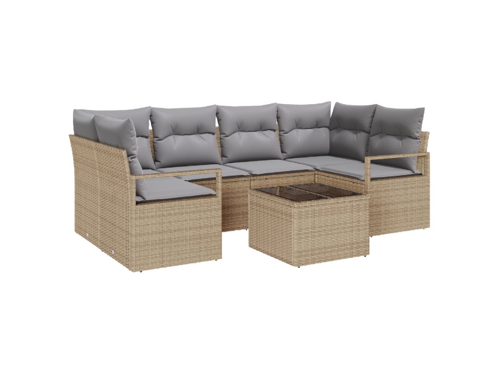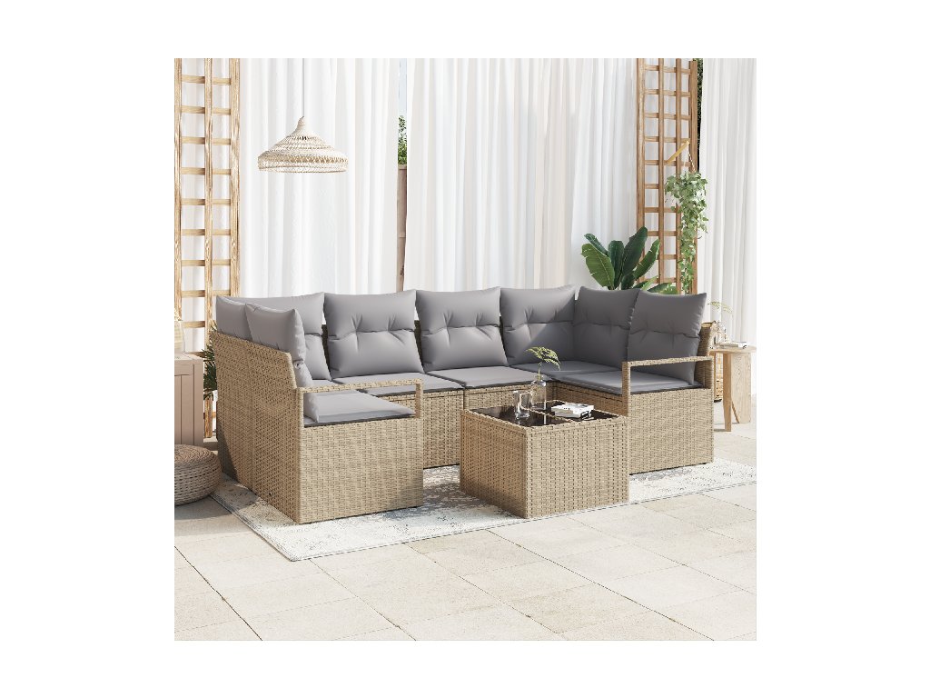 Set pohovek 7 pcs Beige a šedá polyratan