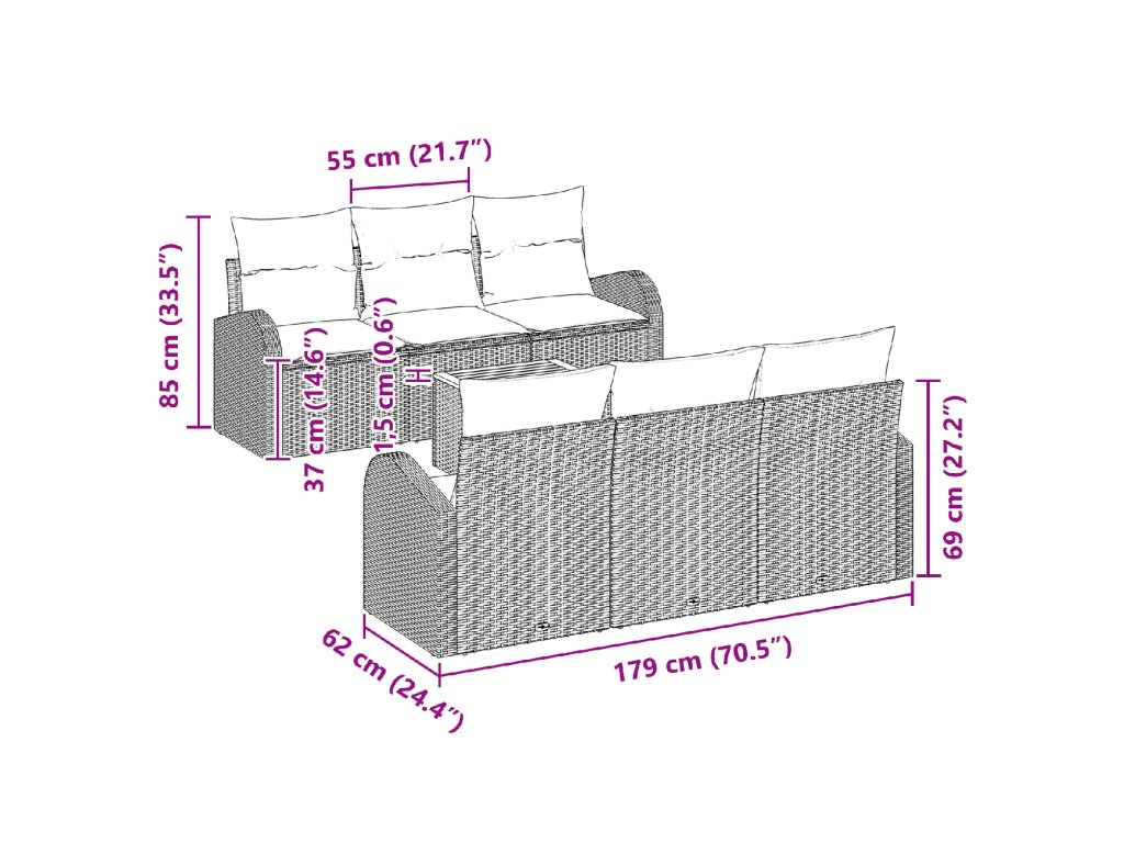 Sada zahradních pohovek 7 pcs Béžová Poly ratan