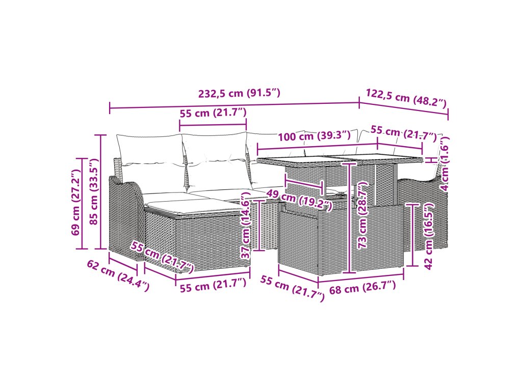 Sada zahradních pohovek s polštářem 7 pcs Béžová Poly ratan