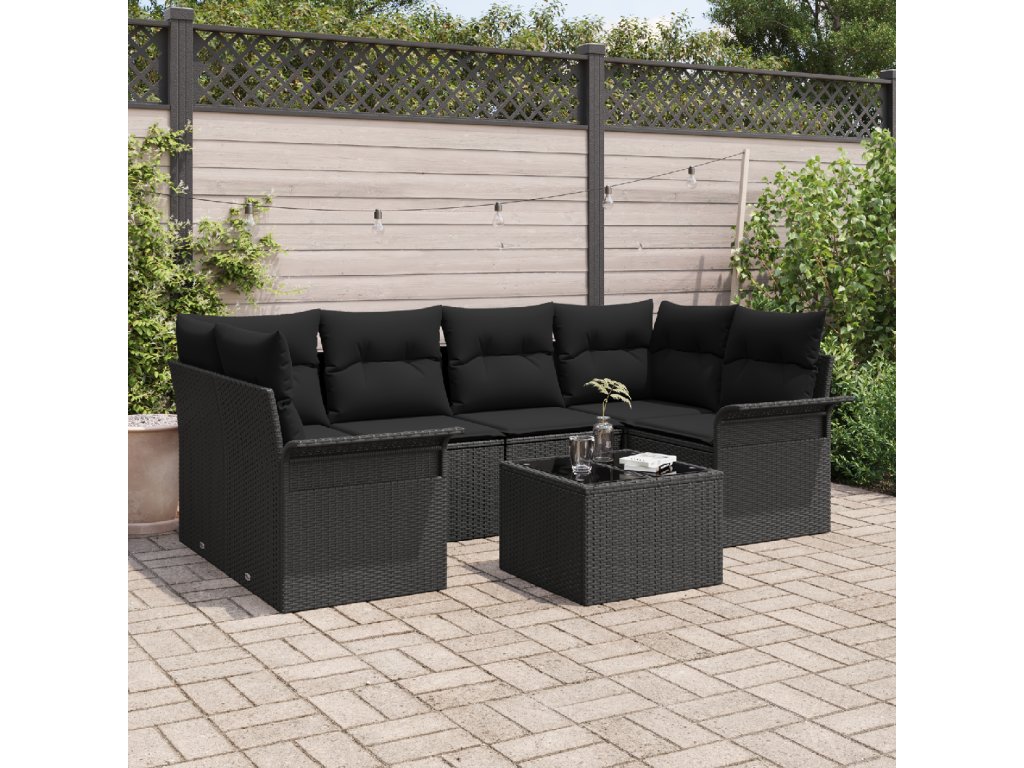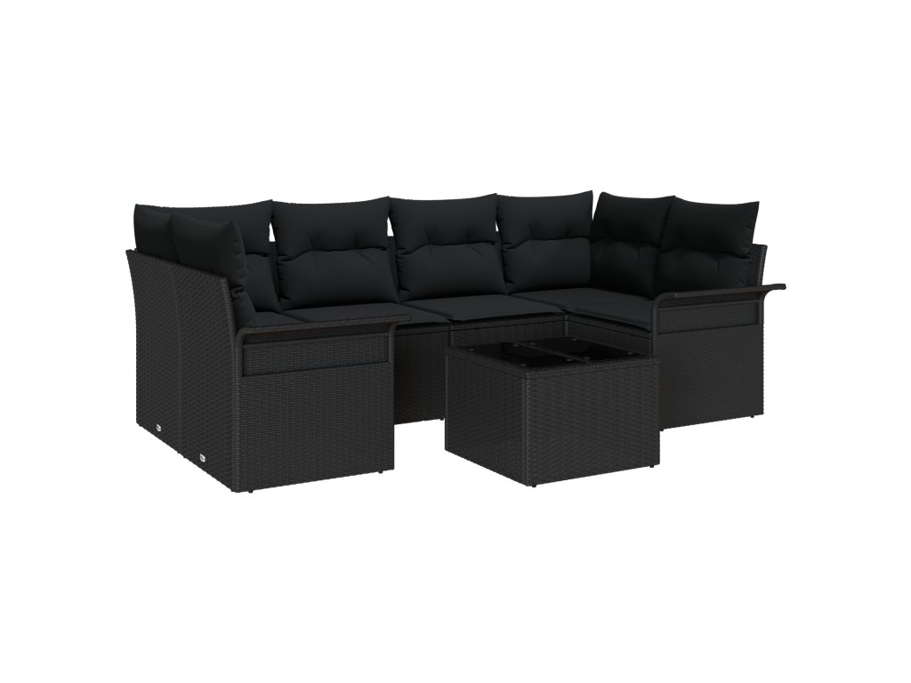 Sada zahradních pohovek 7 pcs Černá Polyratan a ocel a sklo