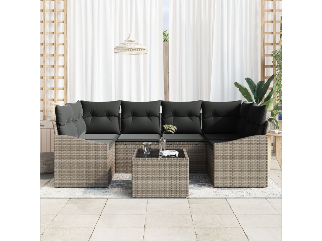 Set pohovek s polštářem s polštářem 7 pcs Šedá polyratan