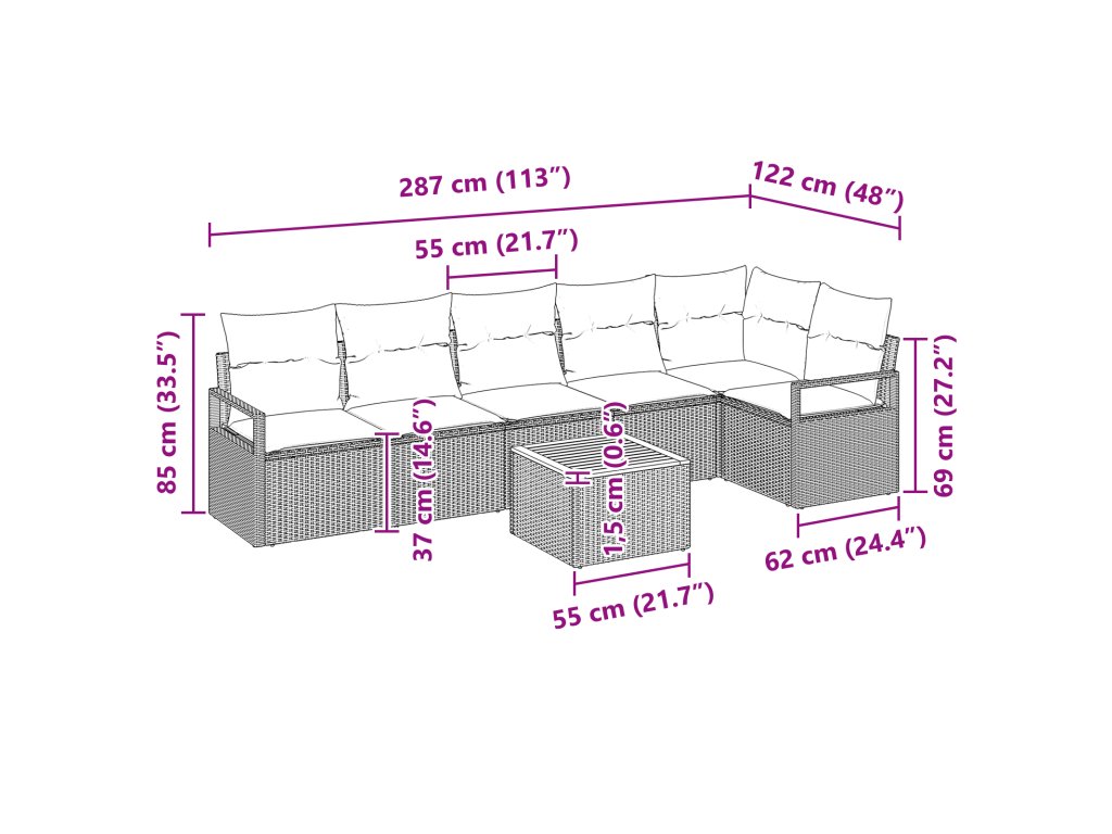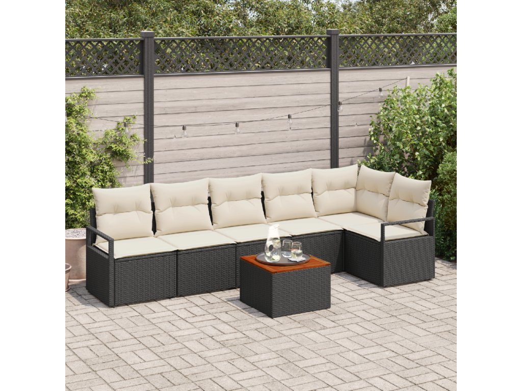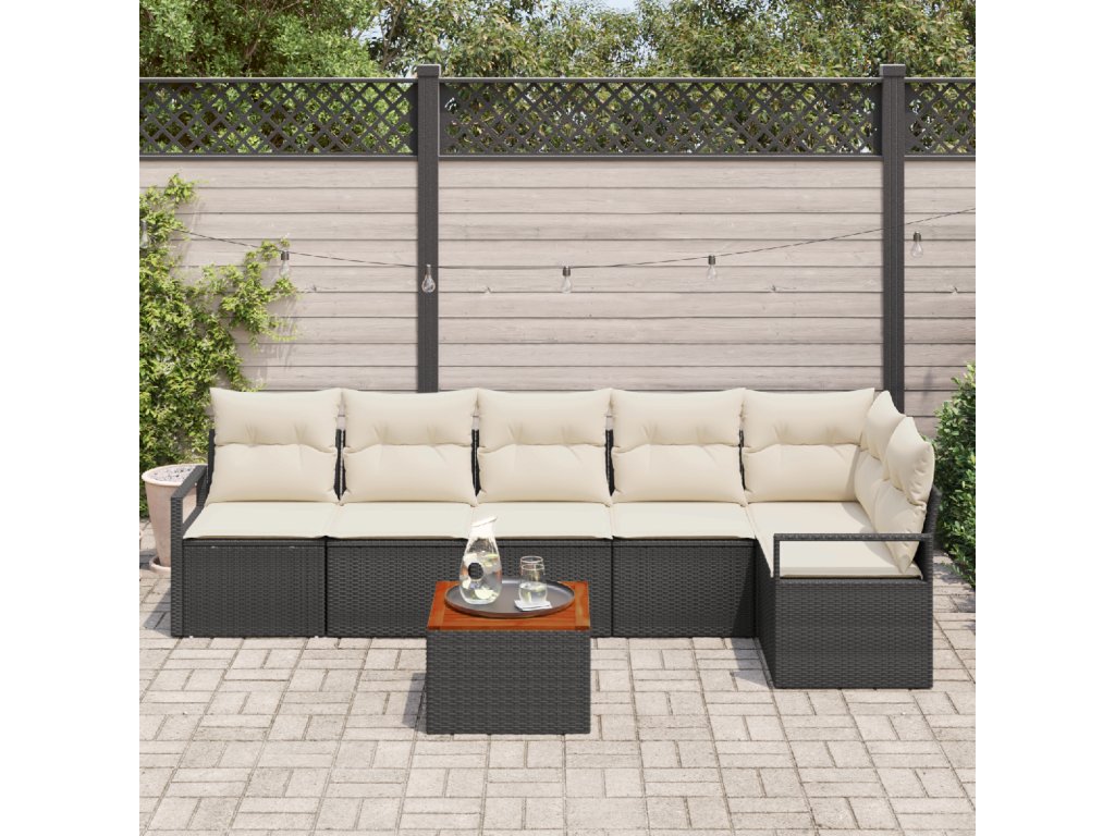 Sada zahradních pohovek s polštářem 7 pcs Černá Poly ratan