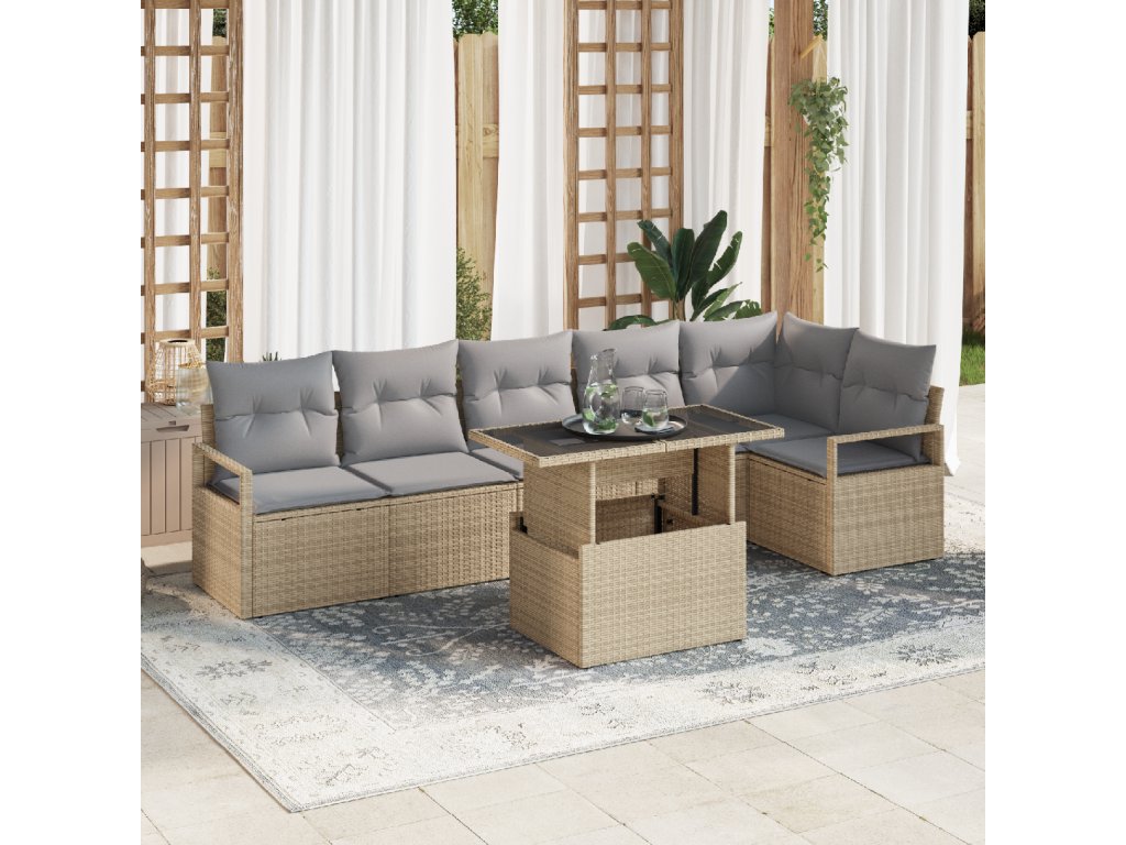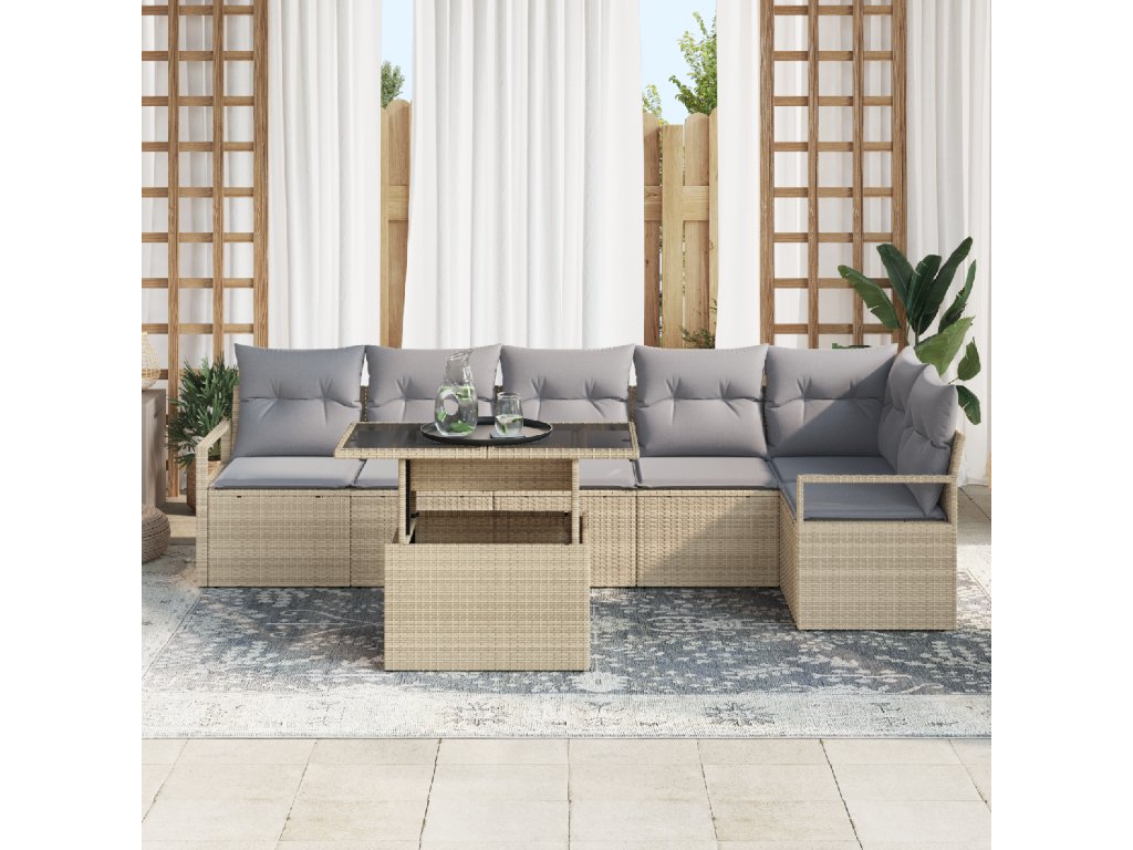 Sada zahradních pohovek s polštářem 7 pcs Béžová Poly ratan