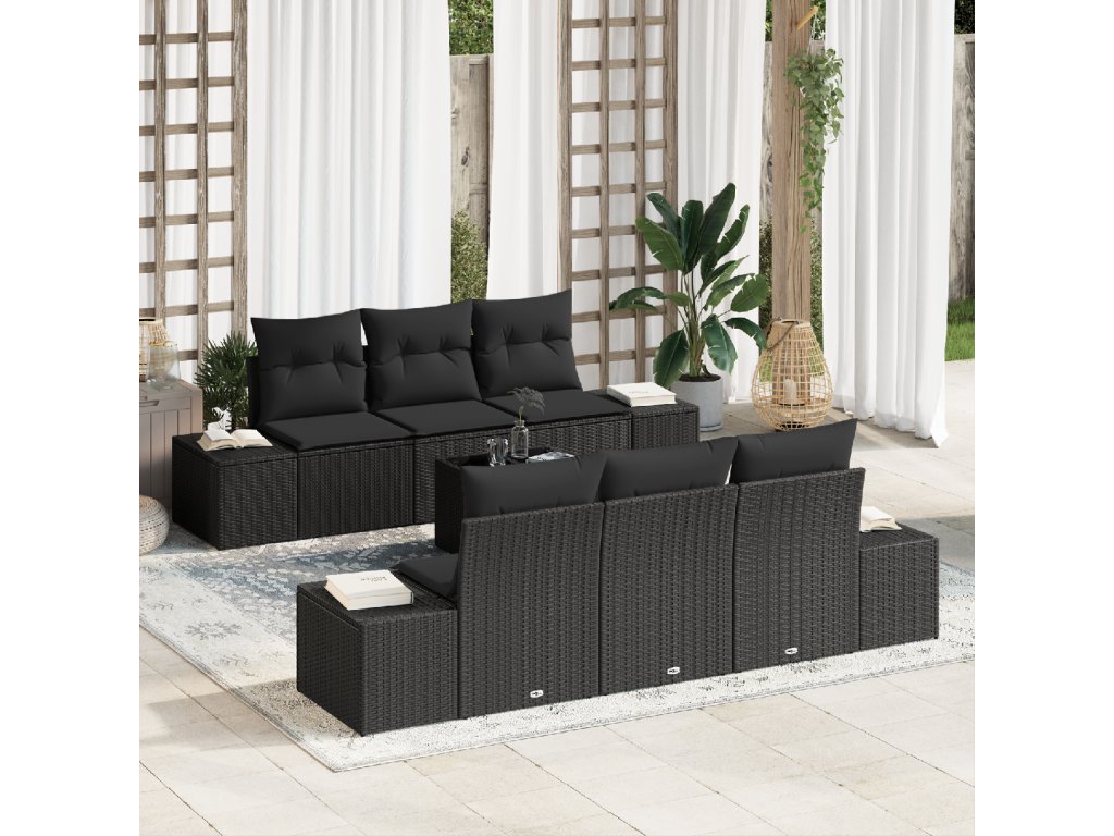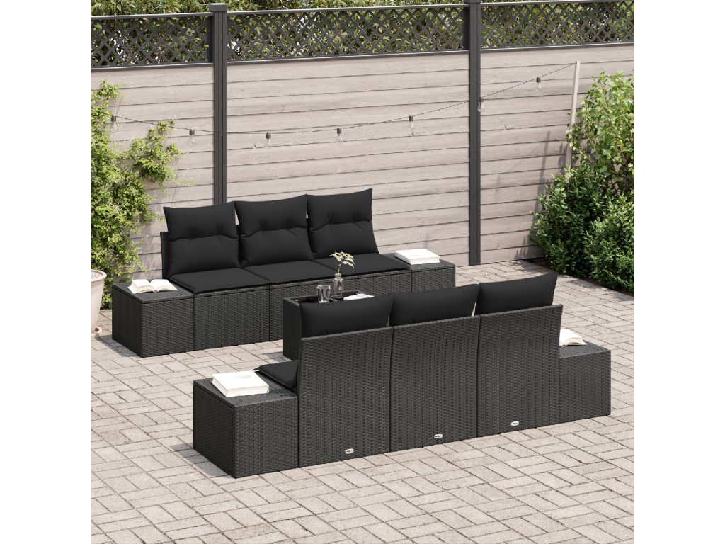 Sada zahradních pohovek s polštářem 8 pcs Černá polyratan