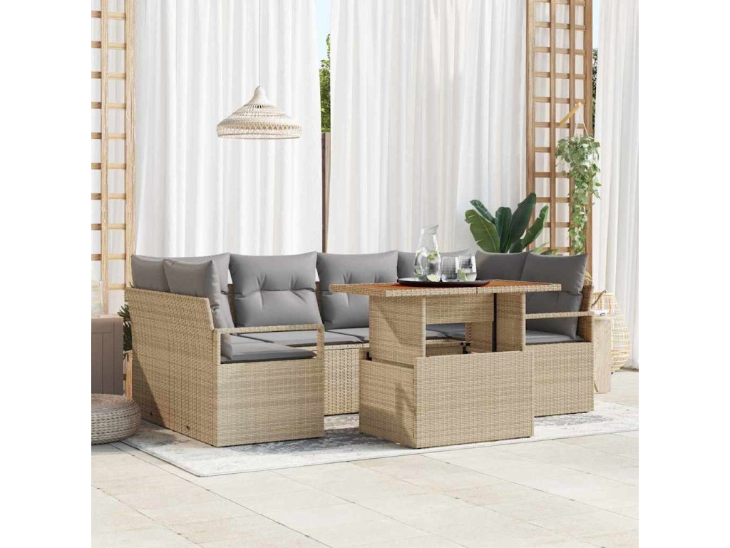 Sada zahradních pohovek s úložištěm 7 pcs Béžová Poly ratan