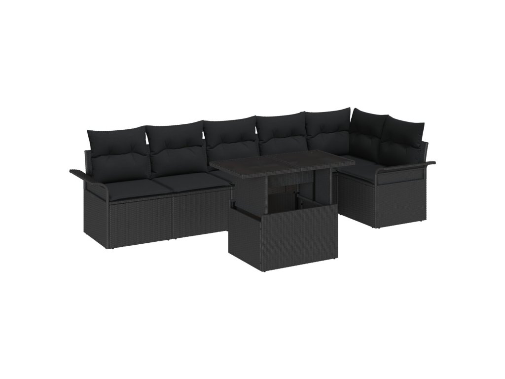 Sada zahradních pohovek s polštářem 7 pcs Černá Poly ratan