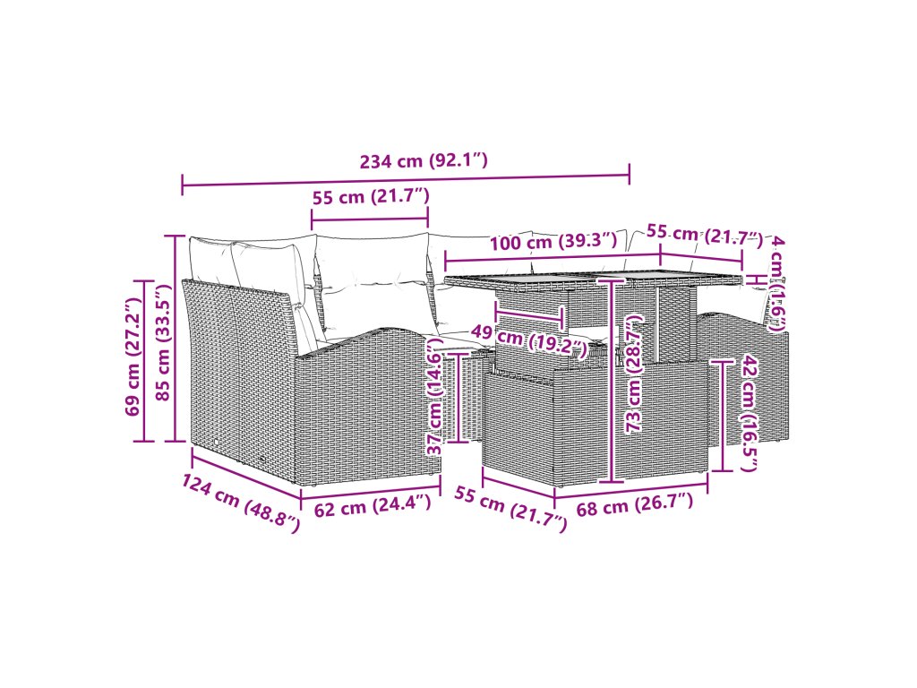Tato zahradní jídelní souprava s polštáři posouvá venkovní luxus na úplně novou úroveň s kombinací moderního designu a solidní funkčnosti. Perfektní pro každého, kdo má rád venkovní aktivity, má hladké linie a jednoduchý styl, který dodá kouzlo každé zahradě nebo terase. Představte si, jak si užíváte slunečné odpoledne na téhle soupravě, pohodlně se usadíte a máte skvělá místa pro rodinu a přátele.