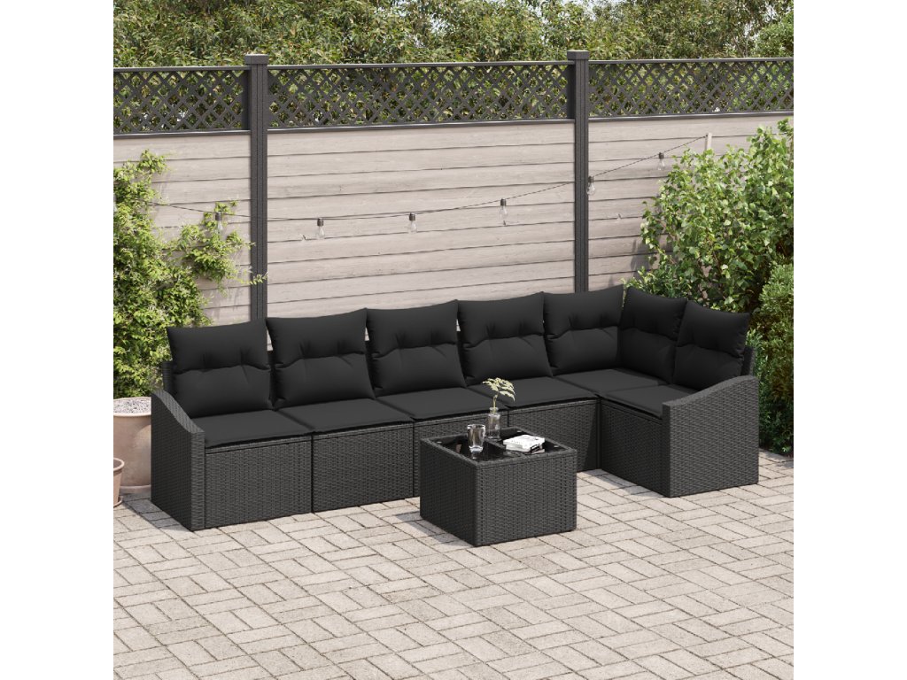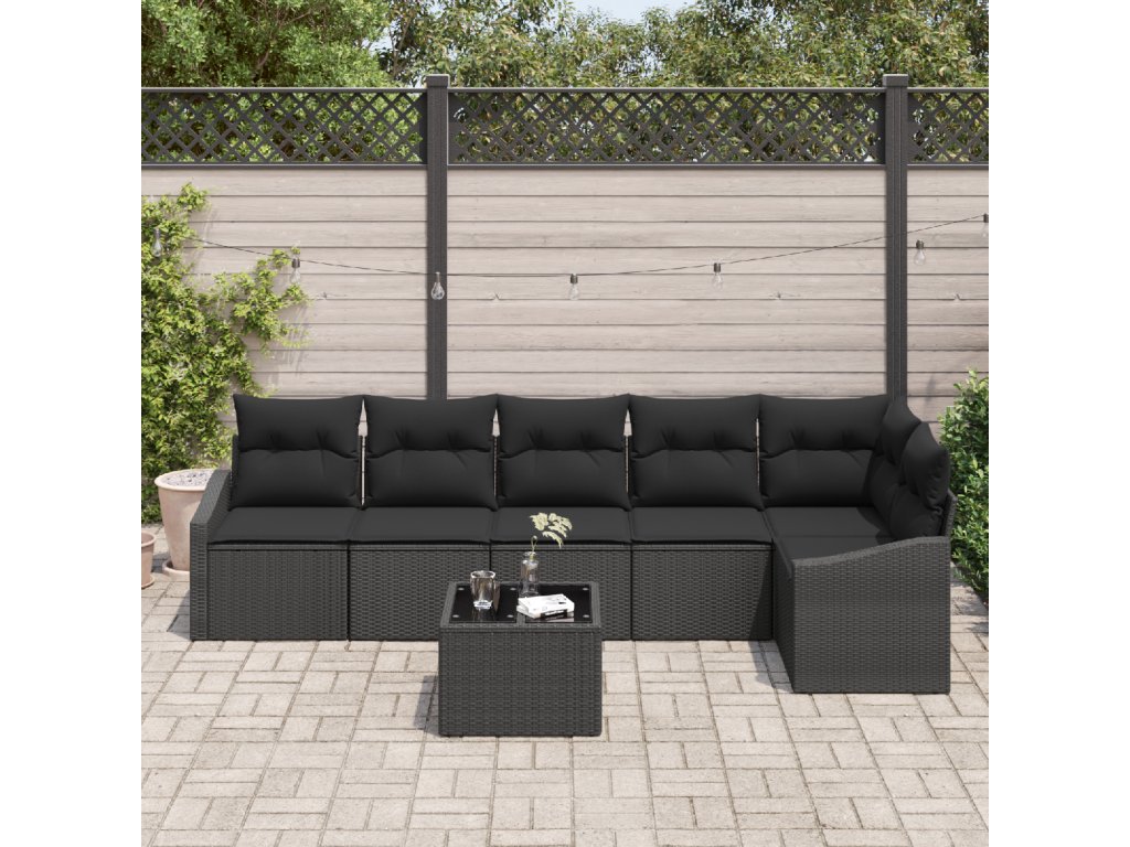 Set pohovek s polštářem s úložištěm 7 pcs Černá polyratan
