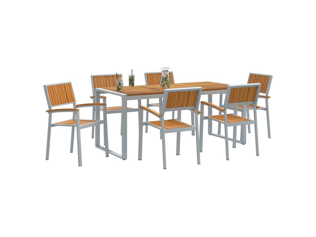 - Odolný design: Masivní akáciové dřevo a ocelový rám dělají z tohoto setu silnou a dlouhotrvající volbu. Tato kombinace dodává nejen sílu, ale i trochu rustikálního kouzla, která spojuje moderní styl a užitečnost. A materiály potřebují minimální údržbu, takže si užijete spoustu bezstarostných chvil.