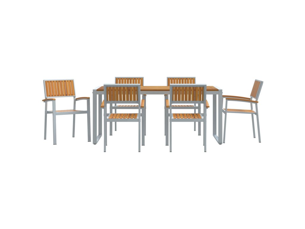 Tento moderní zahradní jídelní set promění jakoukoli zahradu nebo terasu na skvělé místo na jídlo. Díky svému čistému designu se hodí do každého moderního venkovního prostředí. Je ideální na venkovní večeře nebo brunch, vypadá super a hodně toho vydrží. Představte si rodinná setkání pod hvězdami nebo lenošení u víkendových snídaní, kde si vychutnáváte jednoduchost a funkčnost tohoto krásného venkovního setu.