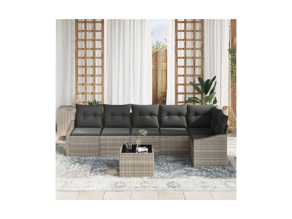 Set pohovek s polštářem s úložištěm 7 pcs Světle šedá polyratan