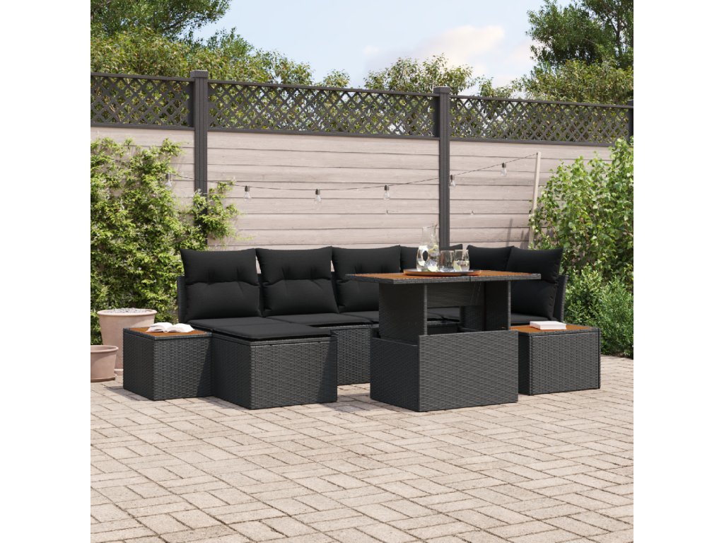 Zahradní jídelní souprava s polštářem 7 pcs Černá a hnědá