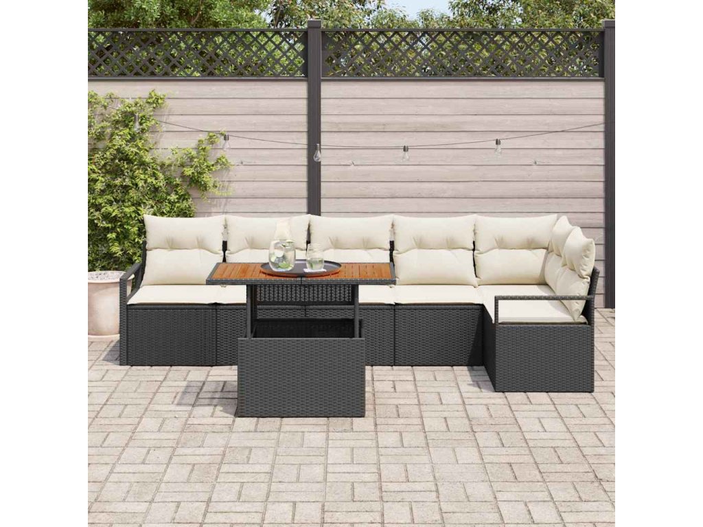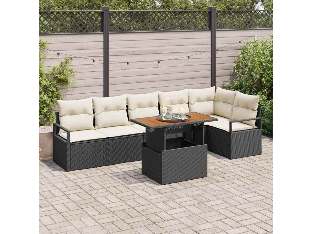 Sada zahradních pohovek s úložištěm 7 pcs Černá Poly ratan