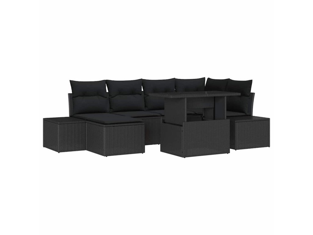 Sada zahradních pohovek s polštářem 7 pcs Černá polyratan