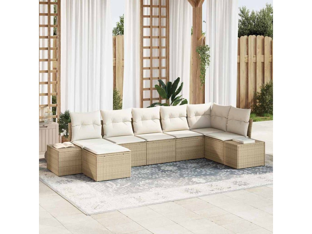 Sada zahradních pohovek s polštářem 7 pcs Béžová polyratan