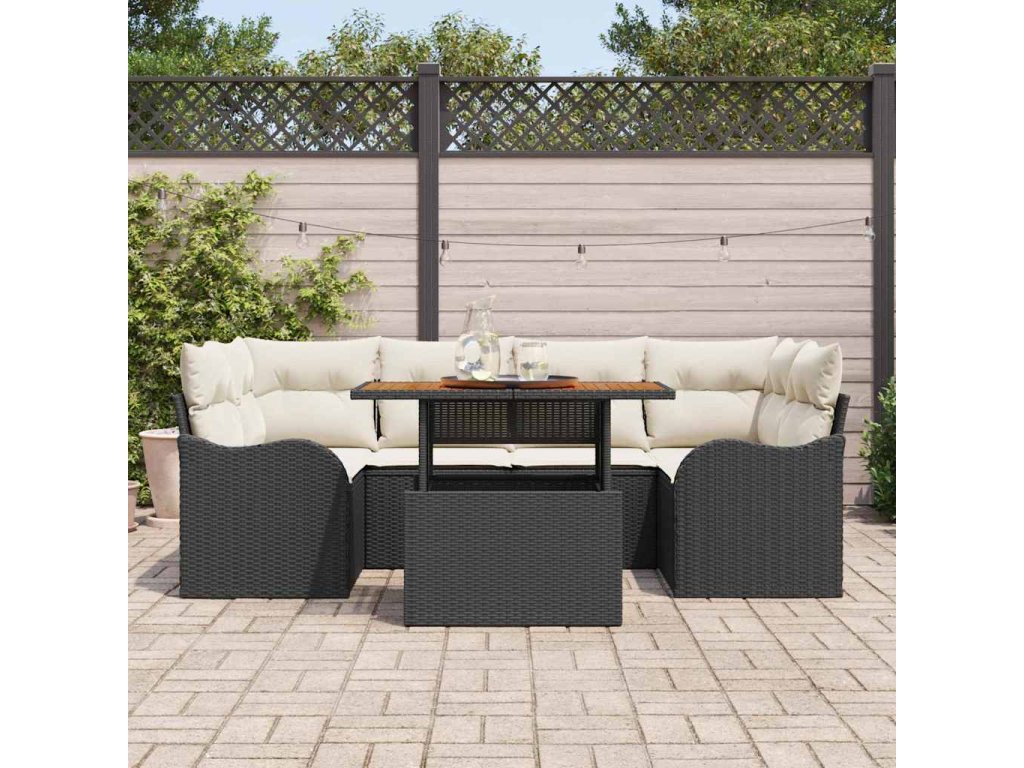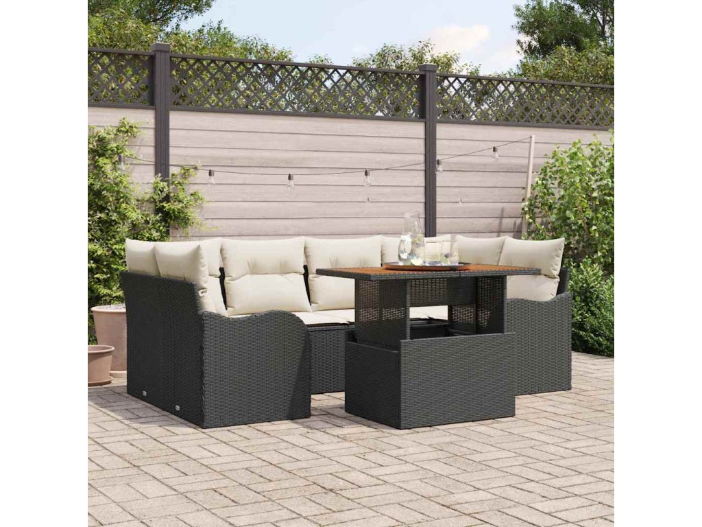 Sada zahradních pohovek s úložištěm 7 pcs Černá Poly ratan