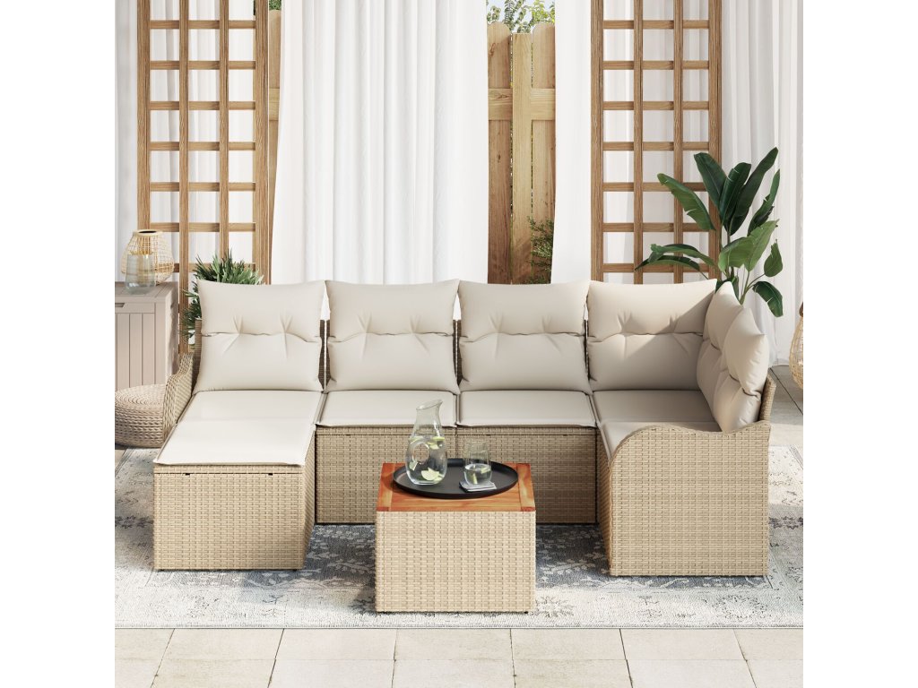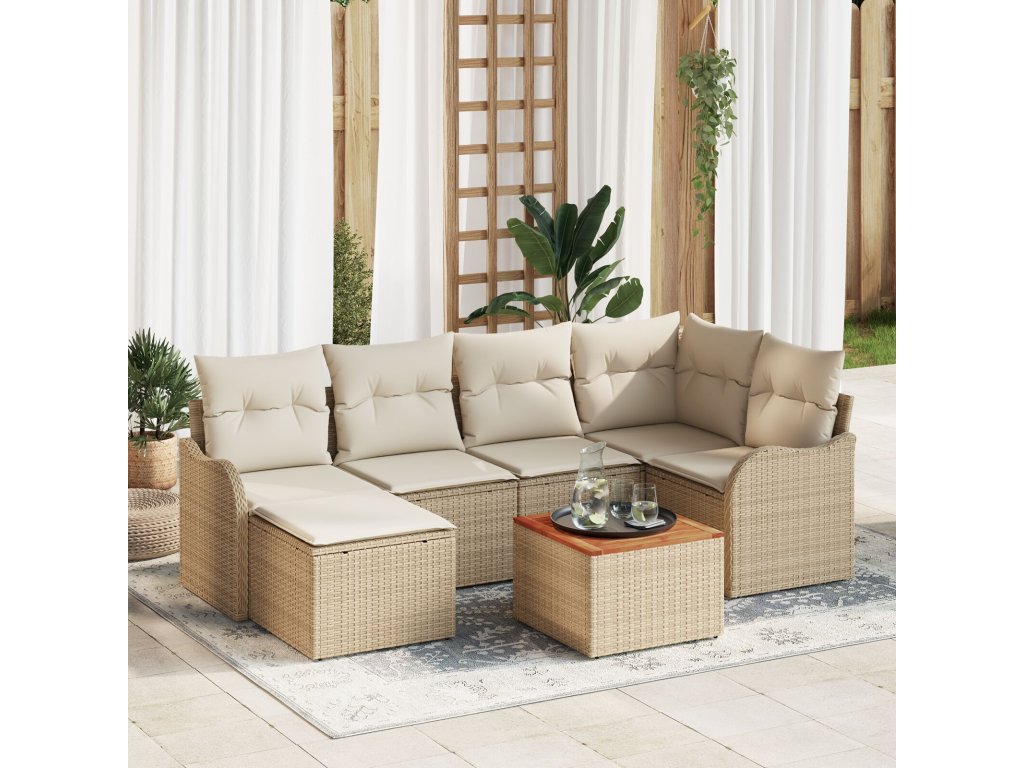 Sada zahradních pohovek 7 pcs Béžová Poly ratan