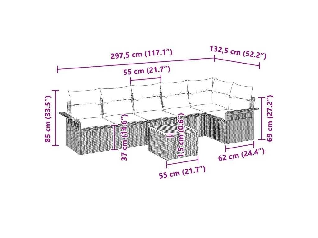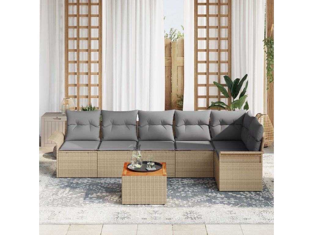 Sada zahradních pohovek 7 pcs Béžová Poly ratan