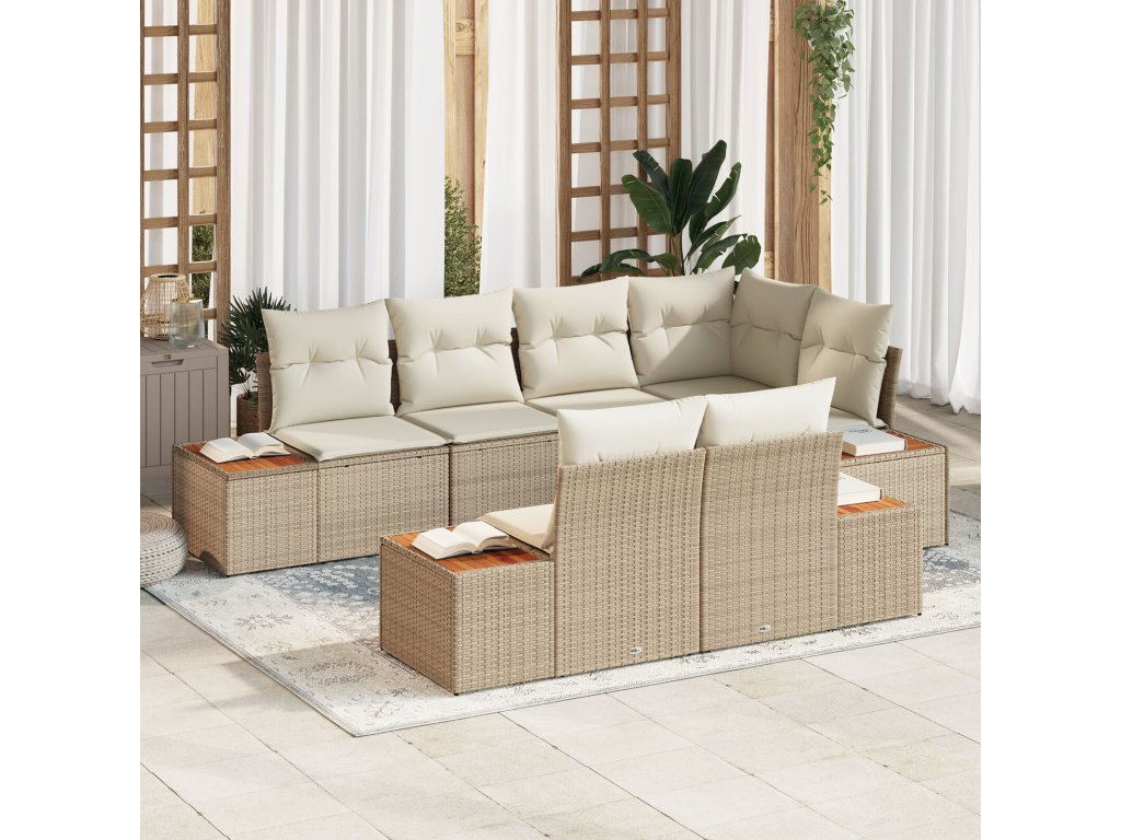 Sada zahradních pohovek s polštářem 7 pcs Béžová polyratan