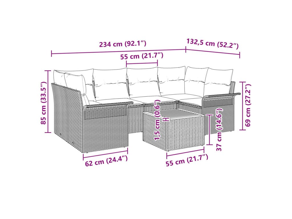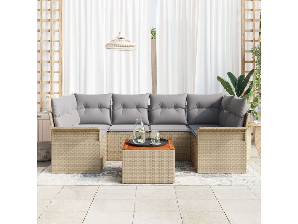 Sada zahradních pohovek 7 pcs Béžová Poly ratan
