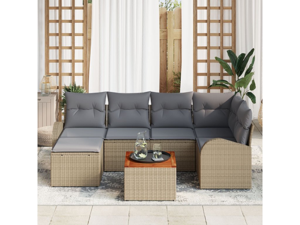 Sada zahradních pohovek 7 pcs Béžová Poly ratan
