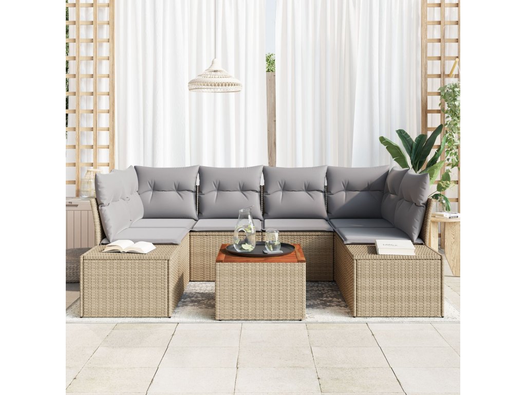 Sada zahradních pohovek s polštářem 7 pcs Béžová Poly ratan