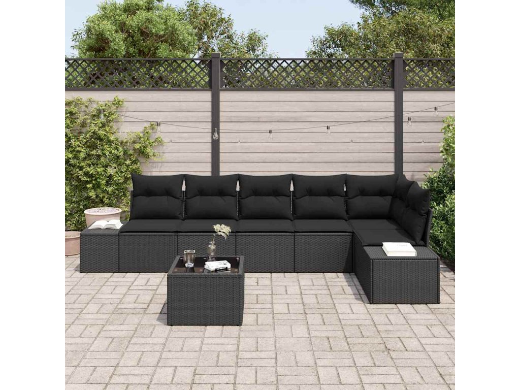 Sada zahradních pohovek s polštářem 7 pcs Černá polyratan